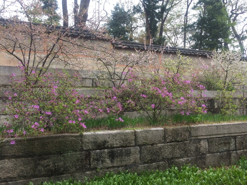 花が咲いててきれい。韓国のイメージって、こういう点々とした花が咲いてるイメージある。