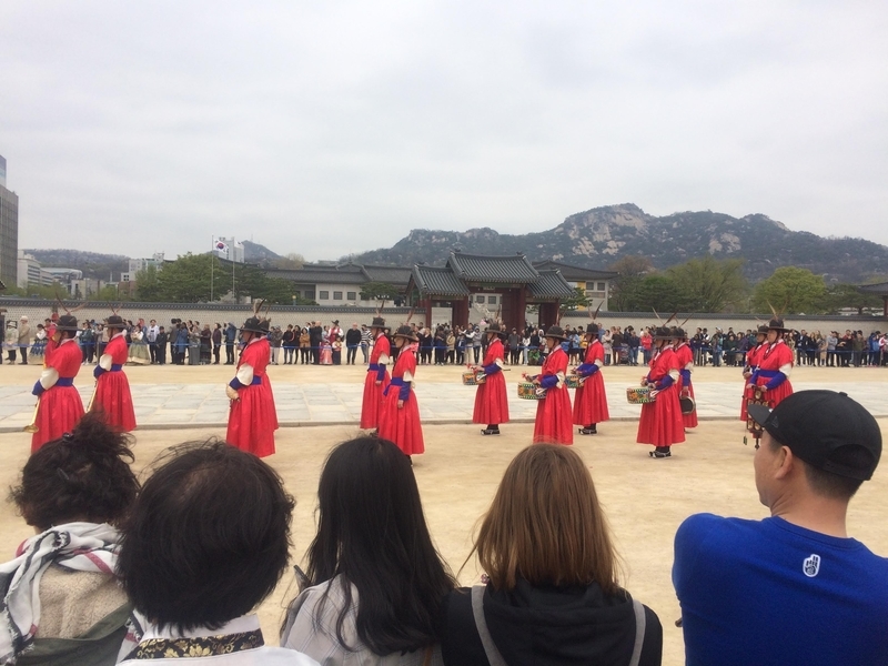 景徳宮を出て、歩いて景福宮まで移動。着いたら入り口前でちょうど交代式をやっていた。