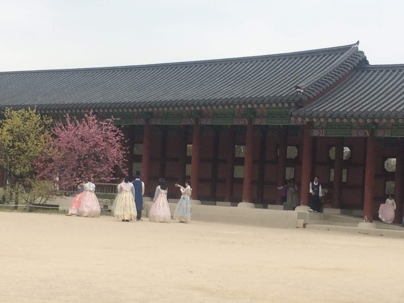こちらもチマチョゴリを着た女の子たちが写真を撮っている。チマチョゴリ、けっこうかわいい。