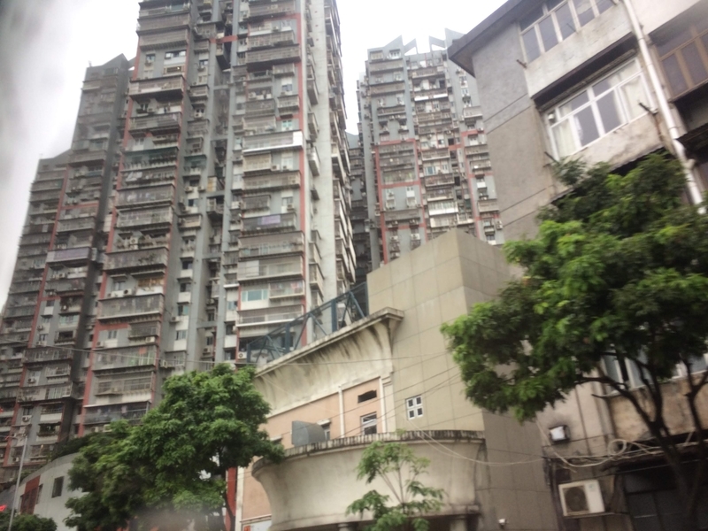 すごい高いこの建物、マンションだ……!地震大国日本では建てられないであろう建築物だ。香港マカオは、地震が全然ないらしい。