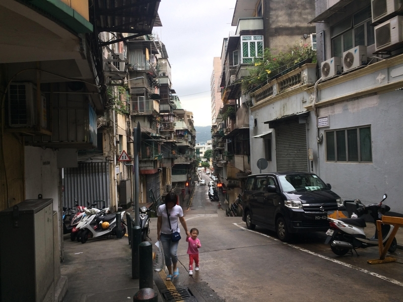 路地の隙間から遠くまで見える。そして歩く親子。ここにも生活があるんだなあ。すこしの間でいいから住んでみたい。