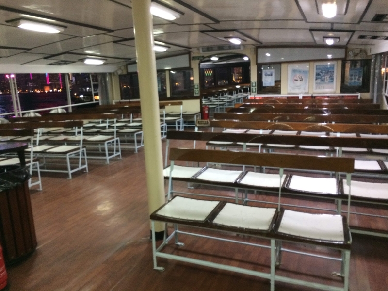 対岸の尖沙咀側に到着。降りる直前に撮った、スターフェリーの内部。こんな船でした。