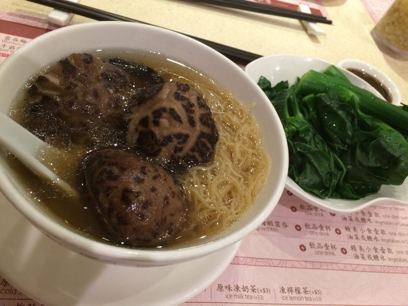 セットメニューを頼んだ。連れが海老ワンタン麺を頼んだので、じぶんはマッシュルーム麺。でっかい!