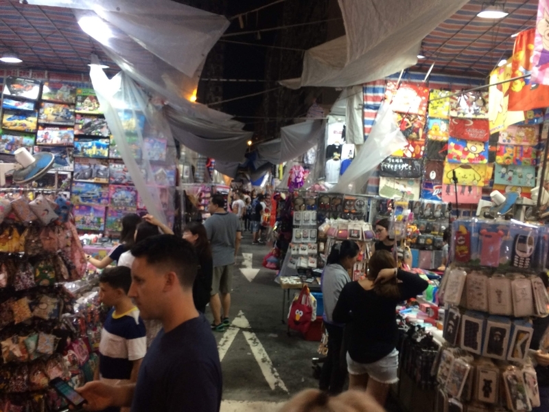 露店のようなお店が立ち並んでる!アジアって感じだ。でもタイのナイトマーケットとかに比べれば落ち着いてる感じがする。