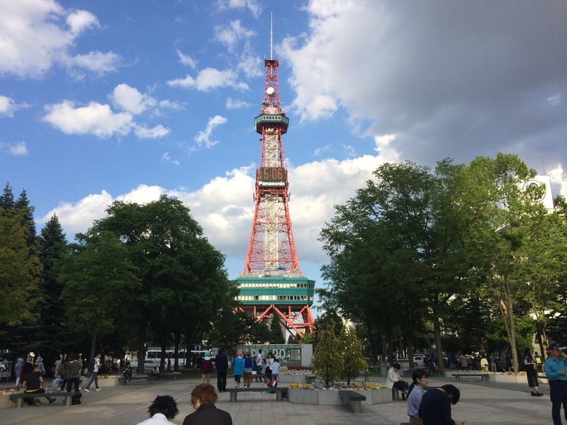 名古屋のテレビ塔は見慣れてるが、さっぽろテレビ塔ははじめてだ。さっぽろのは赤い。