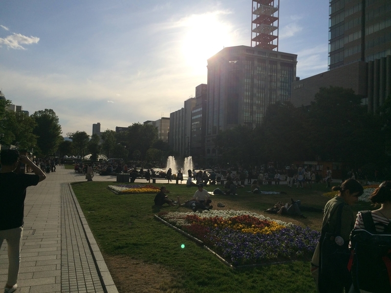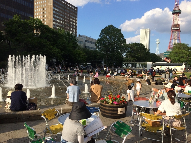 名古屋同様、テレビ塔の前は大通りになっていて、公園のような憩いの場所になっている。この点は名古屋も似ているものの、さっぽろの方が賑わっていた。