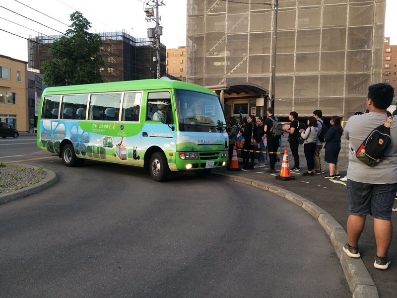 けっこう人が並んでいた。バスも補助席まで満員で、乗り切れない人は次のバスになる。人気なんだな、藻岩山。