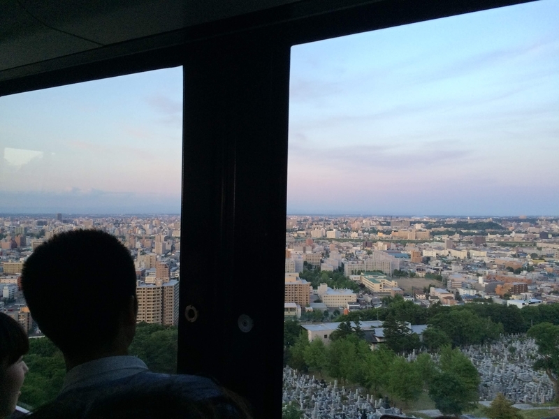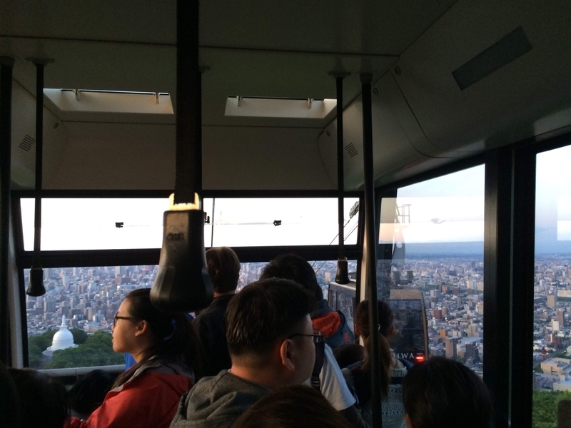札幌の街が一望できる。はじめて乗るので、乗るときどちらに景色が広がるのかわからなかったが、さいわい人の頭越しにみることができた。