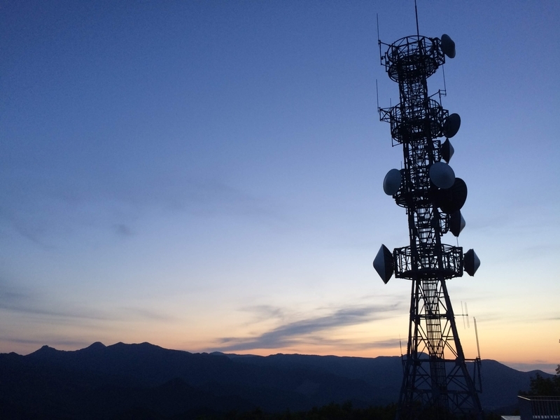 山の方には電波塔?が立っていた。夕焼け空にそびえ立っていてかっこいい!