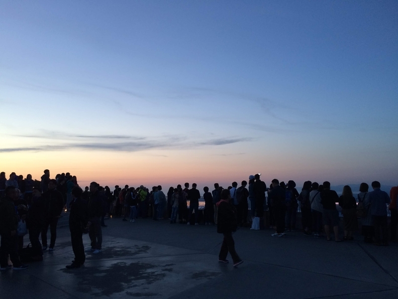日はどんどん暮れて、夜景になっていく。ビクトリアピークでは夜景を見てないので、一層たのしみだ。