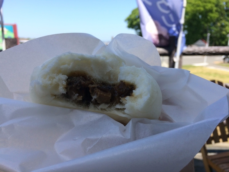 朝メシを食べてなかったので、鹿肉の肉まんを食べた。