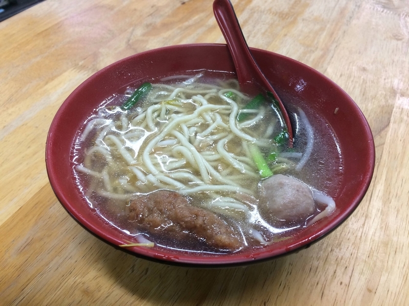 こちらが担仔麺。ラーメンとも違う味わい。そういえばお昼ご飯は、バスに乗る前に買ったおにぎり2つだった。ペロリと平らげた。