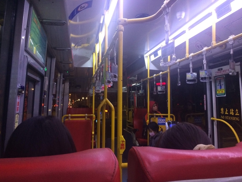 ぜんぜん食べれなかったけど、夜市を切り上げて台中駅のほうへ戻る。帰りのバスはさすがに混んでいて、ずっと立ちだった。