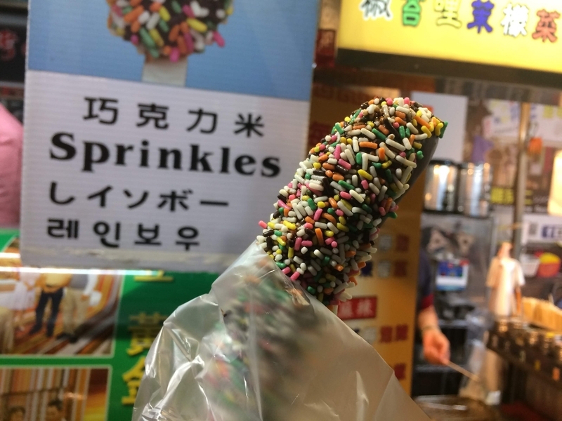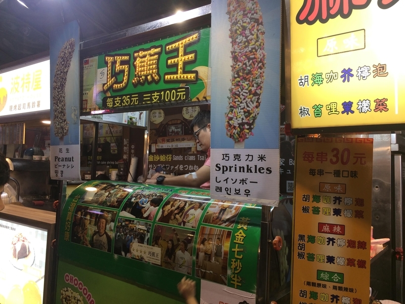 下調べのときにYoutuberがたべてたお店。凍らせたバナナにチョコがコーティングされたやつ。よく見ると……