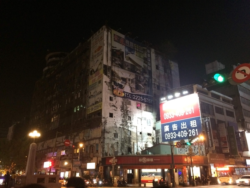 そのすぐ背中側に、廃墟のような建物を発見。駅からもほど近い場所なんだけど、こんな廃墟みたいなのもあるんか。台中は、以前行った台北に比べると、全体的にリアルに人が生活してるまちなんだな〜と感じることができる。なんとなく名古屋に近い気もする。