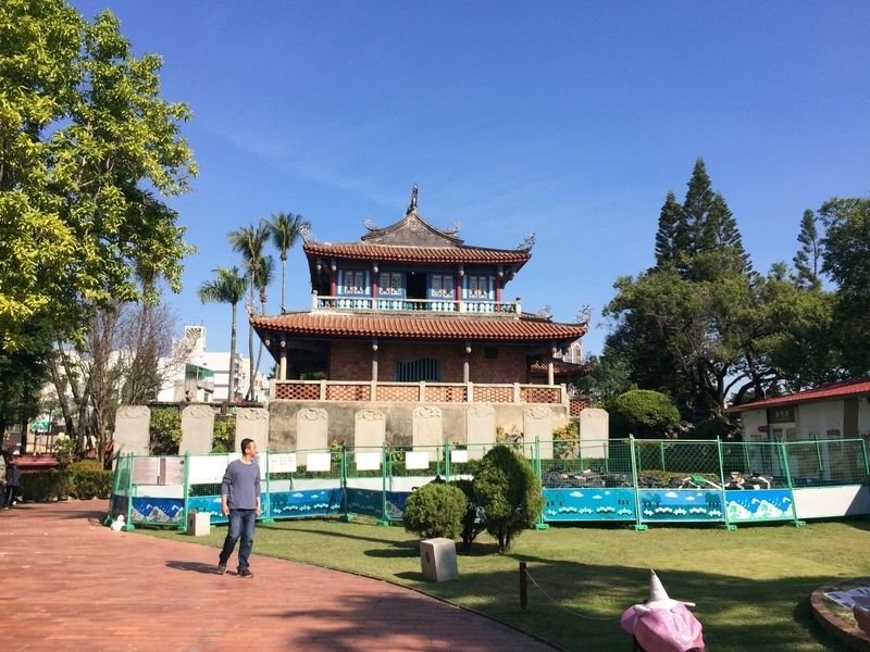 神社です。太平洋戦争の際に台南も空襲にあっていて、この屋上にはそのときの弾痕も残っているらしい。さっき学んだ日本統治時代のできごとだ。
