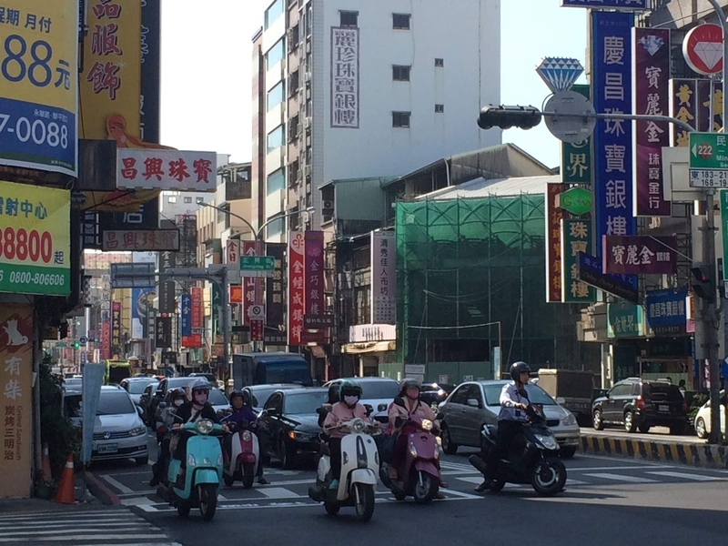 買い物するひと。台湾はどこへ行ってもバイクが多い。