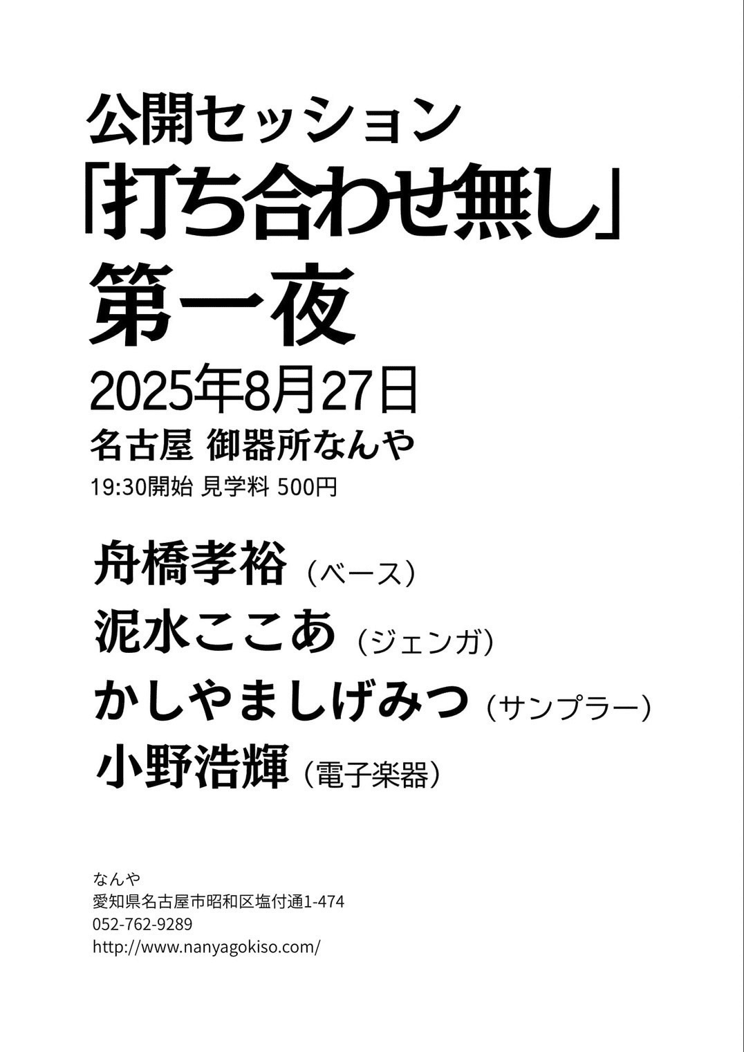 小野さんはじめ皆さんの音がいいというのもでかいだろう。また、自分も参加しているからかもしれない。