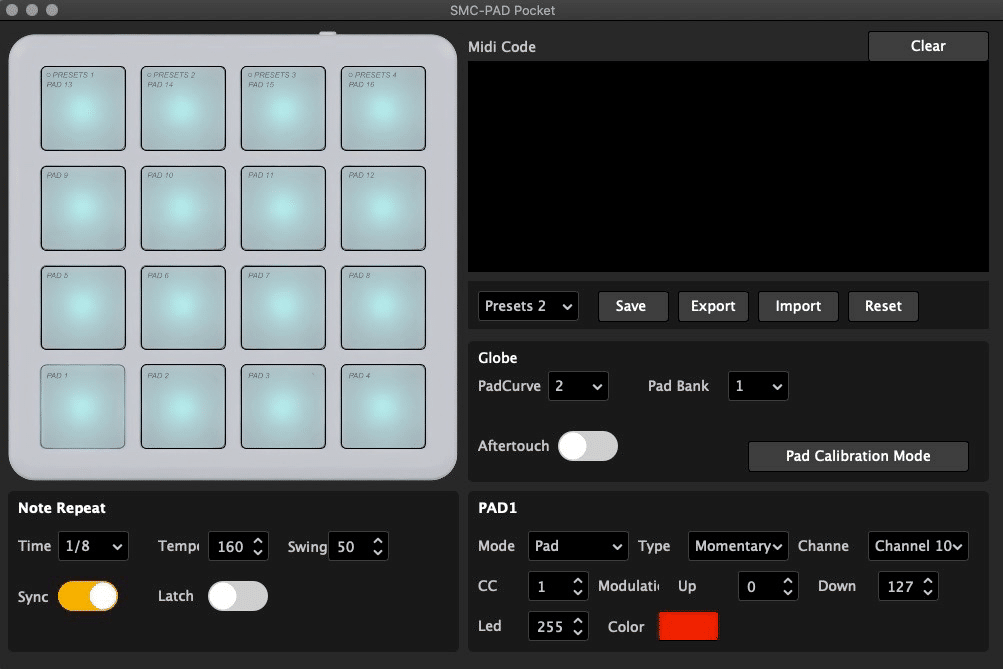 SMC PAD Pocketは、MIDI Suiteというソフトで本体の設定が色々できる。