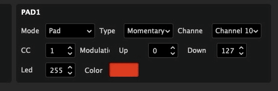 Controlにすると、隣のTypeでPad Bank+(-)などの機能が選べる。