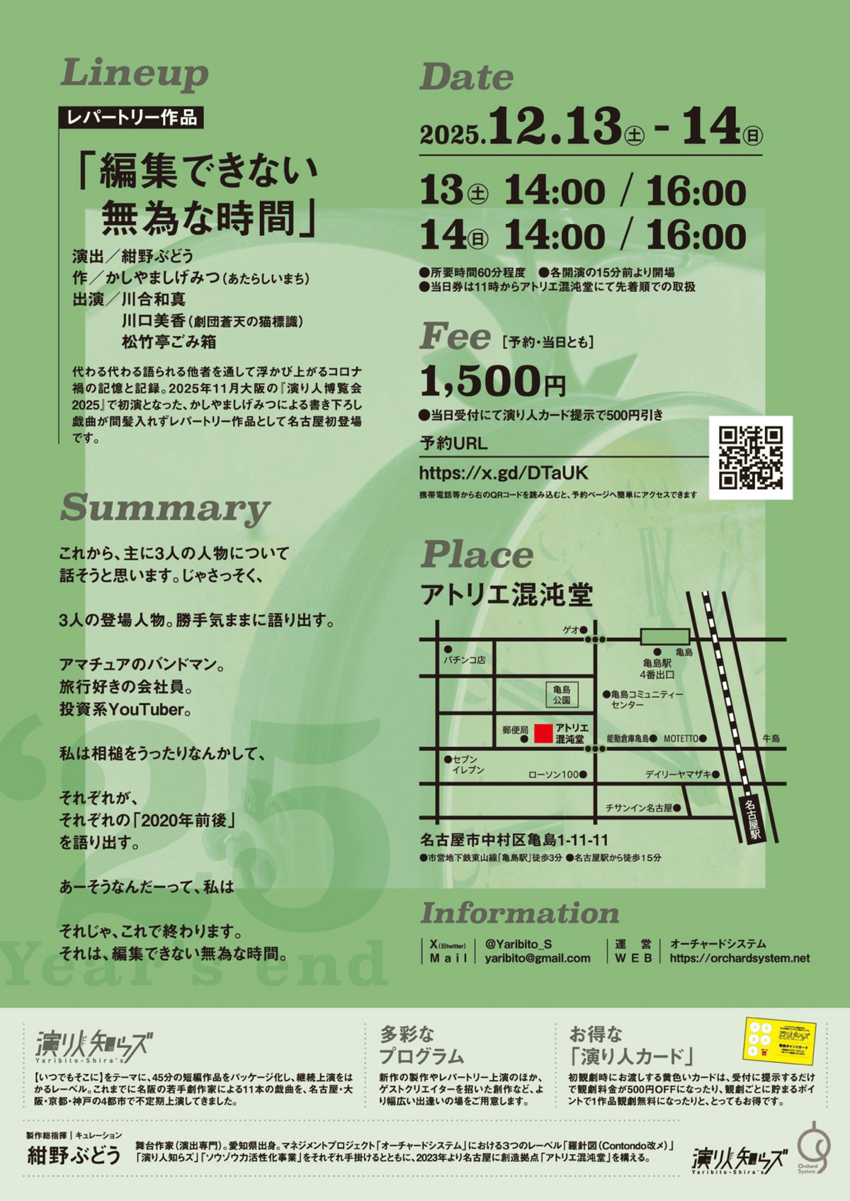 先日の大阪での「演り人博覧会2025」でも上演されたこの作品の、名古屋公演。