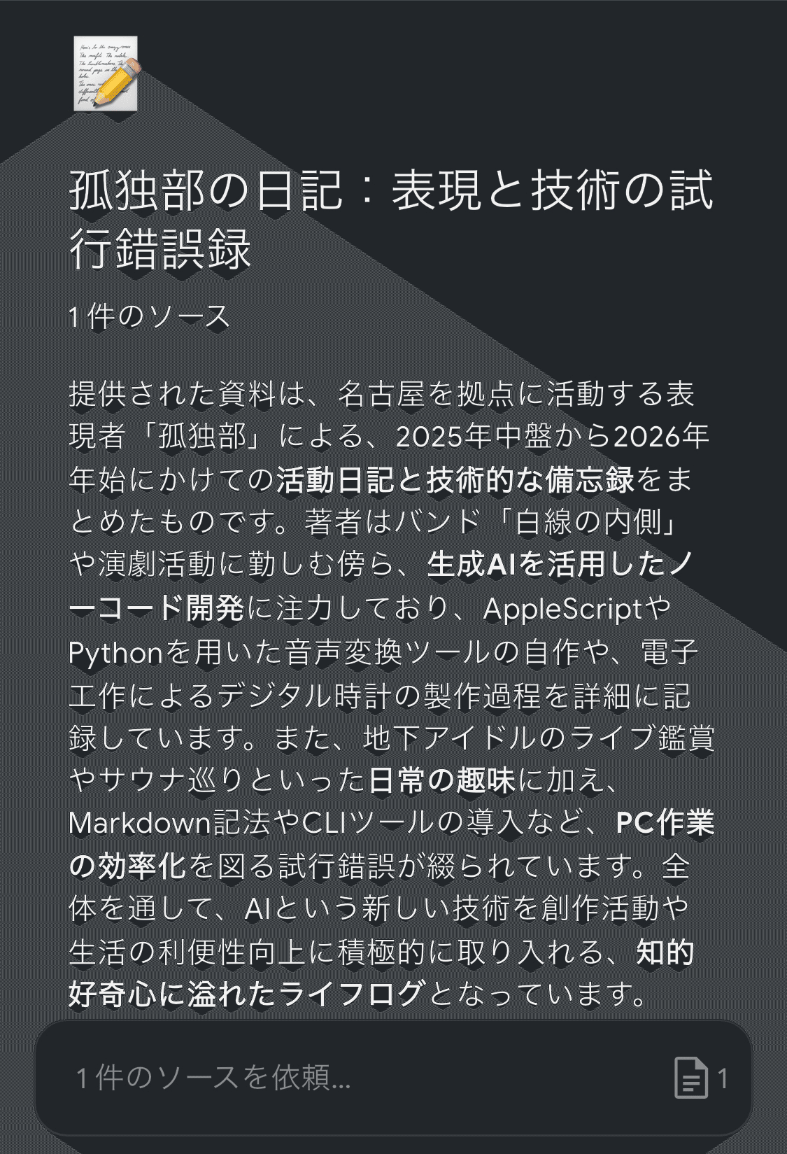 noteの日記を読み込ませたときのサマリー