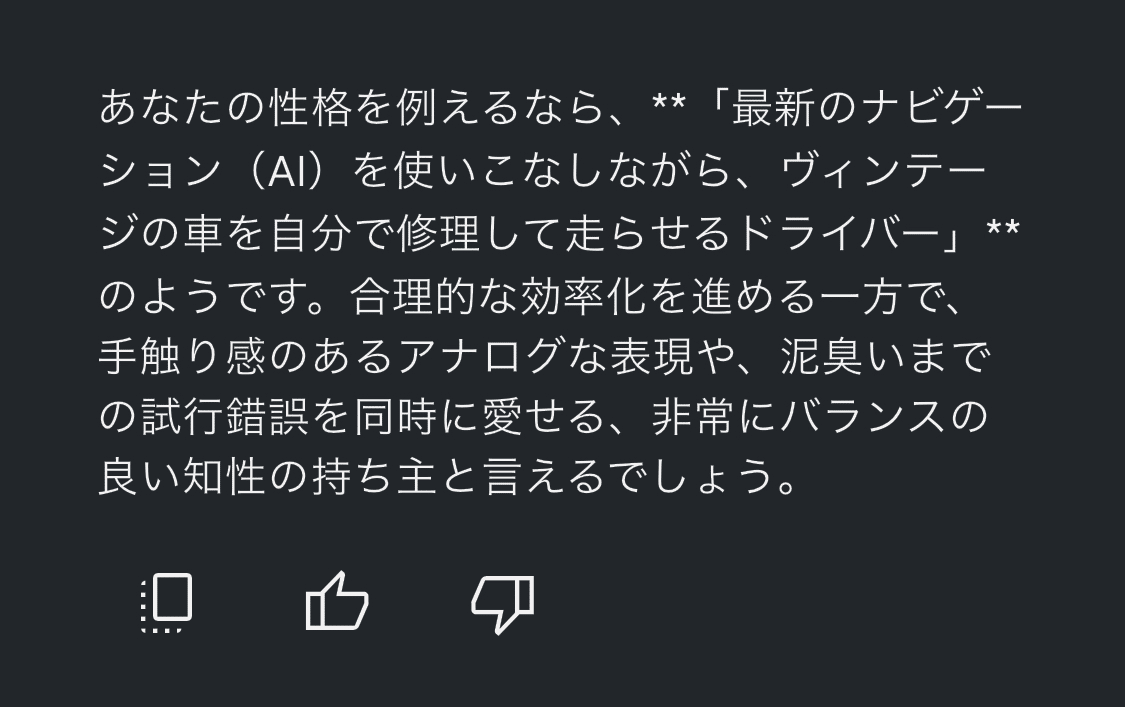 ほかにも、PC操作から趣味についての質問、果ては今回やったような占い的・コーチング的な役割まで頼れる。