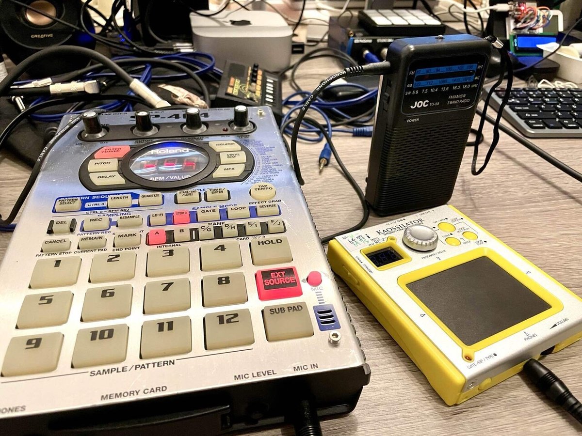 今回のじぶんは、SP-404、kaossilator、monotron delay、そして前回同様小型ラジオ。